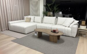Design on Stock hoekbanken bestaan uit losse elementen, waardoor verschillende opstellingen mogelijk zijn. Zo stemmen wij de hoekbank eenvoudig af op de beschikbare ruimte en persoonlijke woonwensen, waarbij de opstelling kan meebewegen met veranderingen in het interieur.