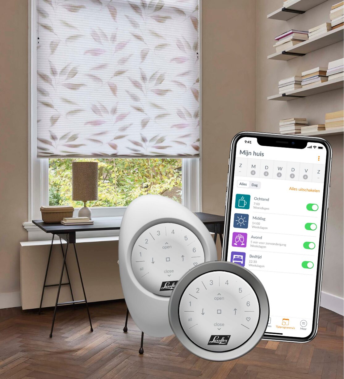 Luxaflex Duette Shades PowerView Automation combineren technische functionaliteit met gebruikscomfort. De Duette Shades staan bekend om hun isolerende eigenschappen dankzij de karakteristieke honingraatstructuur, wat bijdraagt aan een stabieler binnenklimaat. PowerView Automation maakt draadloze bediening mogelijk, individueel of per groep, zonder zichtbare koorden. De shades kunnen worden geprogrammeerd om automatisch te openen en sluiten op vaste tijden. Dit verhoogt het dagelijkse comfort en ondersteunt energiebeheer in huis. Luxaflex biedt verschillende transparanties, zodat lichtregulatie en privacy nauwkeurig afgestemd kunnen worden. De systemen zijn ontworpen voor stille werking en betrouwbare prestaties. Luxaflex Duette Shades PowerView Automation bieden een doordachte combinatie van technologie, comfort en functionele raamdecoratie.